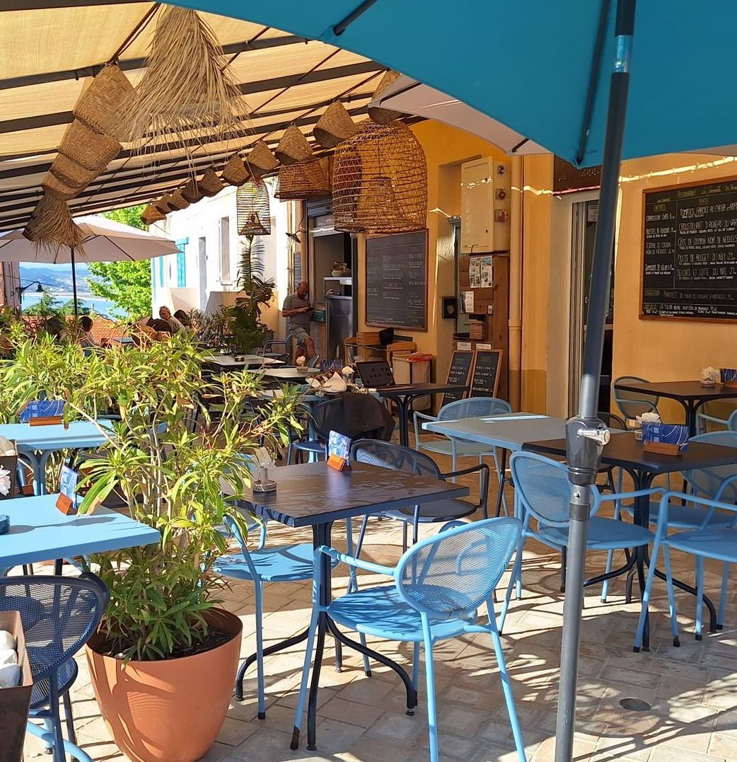 Lorsque vous franchissez la porte, vous êtes immédiatement plongé dans une atmosphère conviviale, faite de bois, de lumière douce et de détails soignés qui racontent une histoire simple et authentique. Aux beaux jours, notre terrasse vous invite à profiter de l’air méditerranéen et de la douceur de vivre qui caractérise si bien Giens.