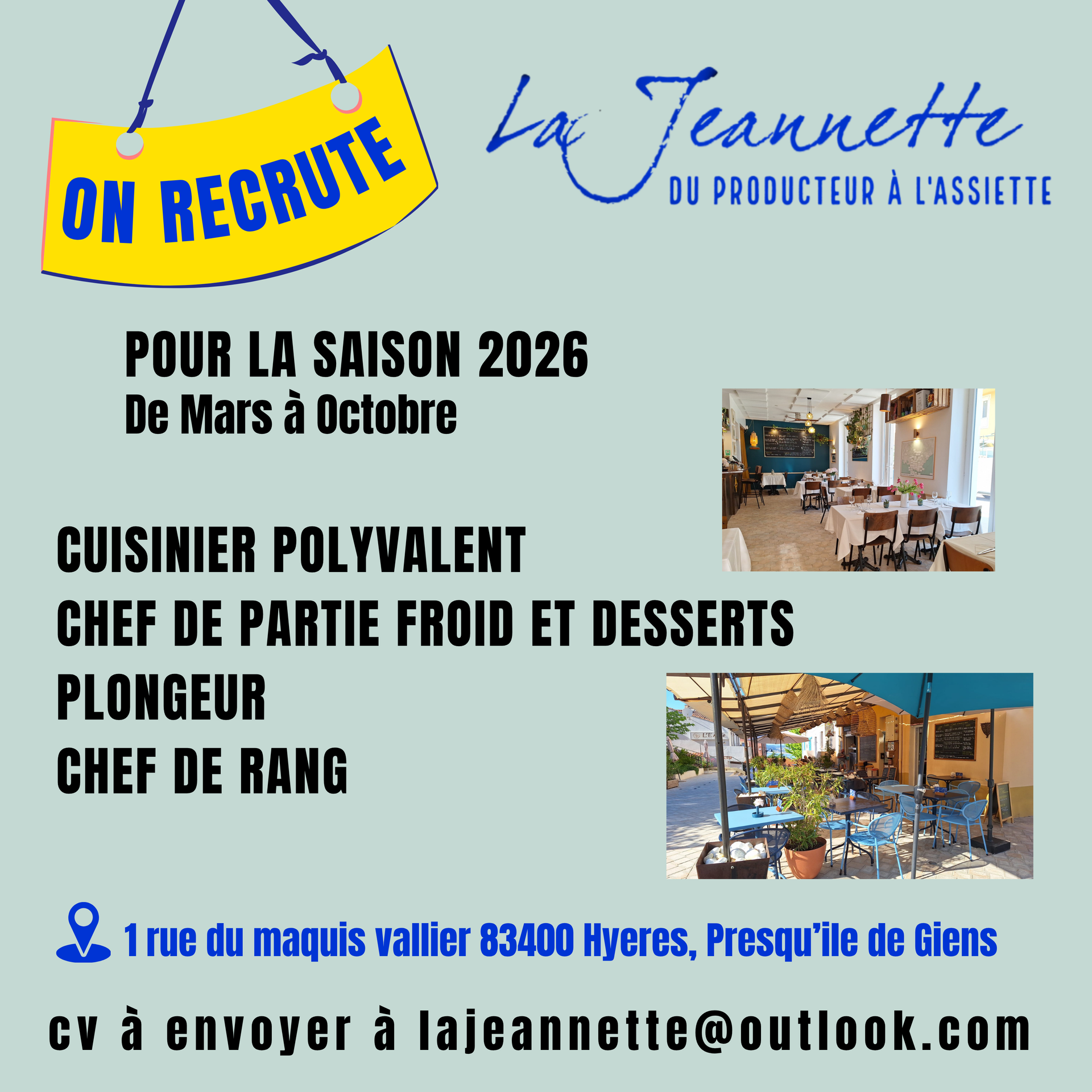 Nichée au cœur du pittoresque village de Giens, sur la presqu’île d’Hyères, La Jeannette est bien plus qu’un simple restaurant : c’est un lieu de vie, de partage et de découverte culinaire. Installée dans l’ancienne poste du village, notre maison a conservé son charme d’antan tout en devenant un espace chaleureux et accueillant.